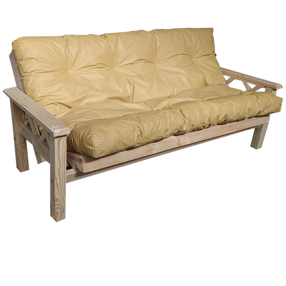 Descubre el Cuerpo de Futón de 3 Cuerpos de Pino, un mueble resistente y práctico que se convierte fácilmente en una cama de dos plazas, ideal para recibir a tus visitas.