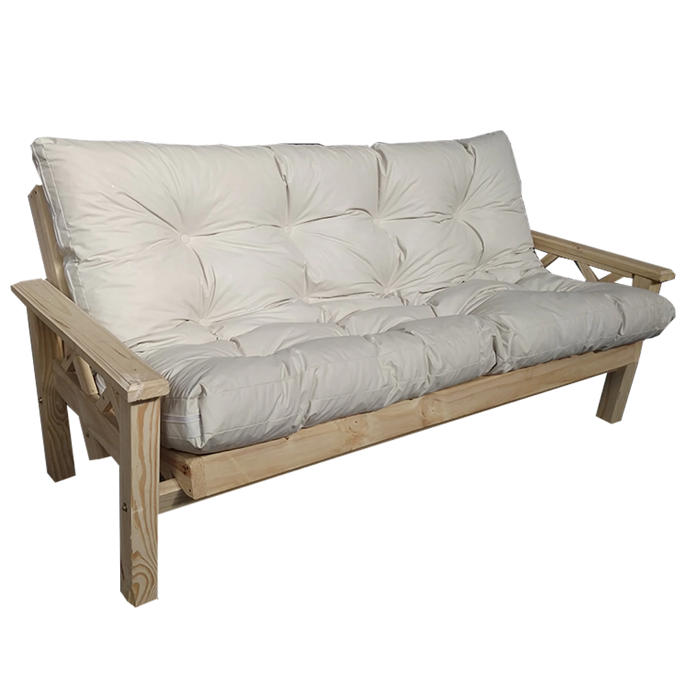 Descubre el Cuerpo de Futón de 3 Cuerpos de Pino, un mueble resistente y práctico que se convierte fácilmente en una cama de dos plazas, ideal para recibir a tus visitas.